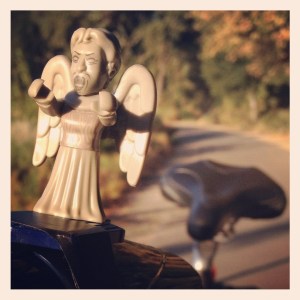 My Guardian Angel protecting me for my ride. I am fine as long as I do not blink. A shout-out to Doctor Who fans everywhere.