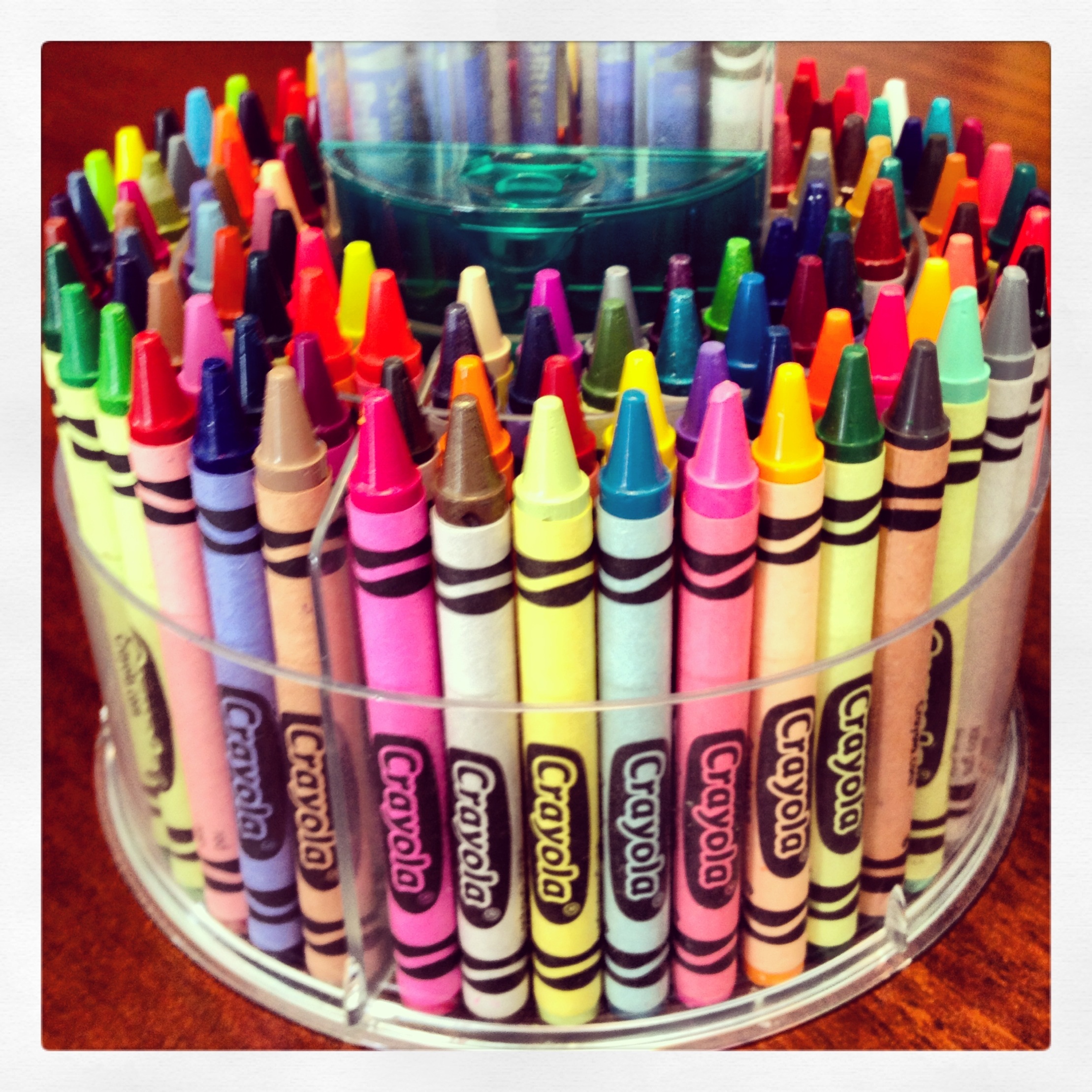 Not the traditional set of 64; nope I went for the deluxe set with over 100 crayons all in a special spinning case.